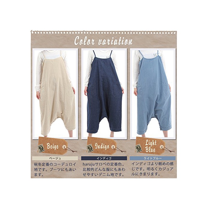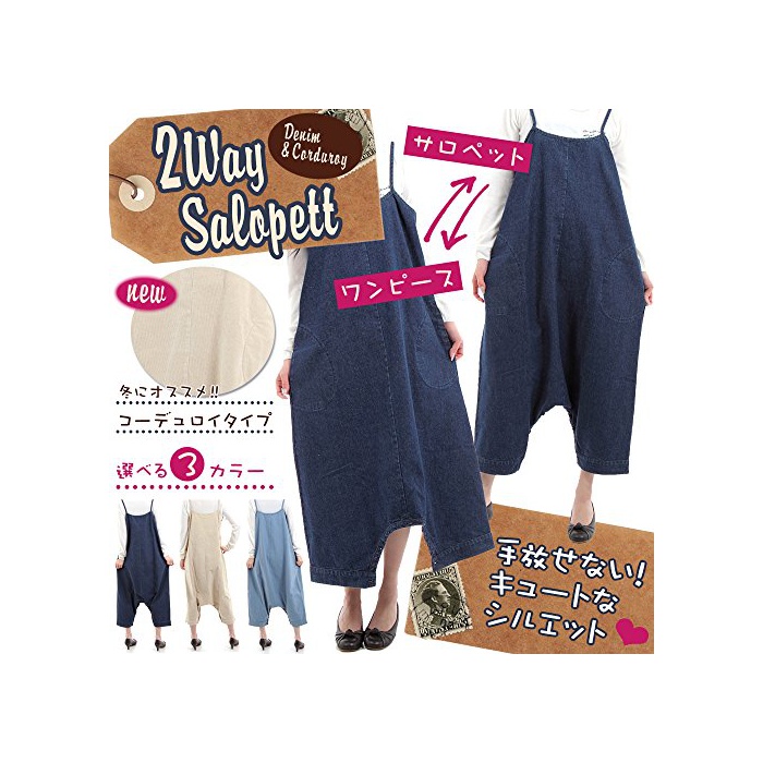 Haruju haruju 2WAY all in one 덩거리(데님의 한가지) 원피스 & 뽀빠이 바지 데님 악세사리 세트 레이디스 S M L 내츄럴계 overalls 원피 (M)