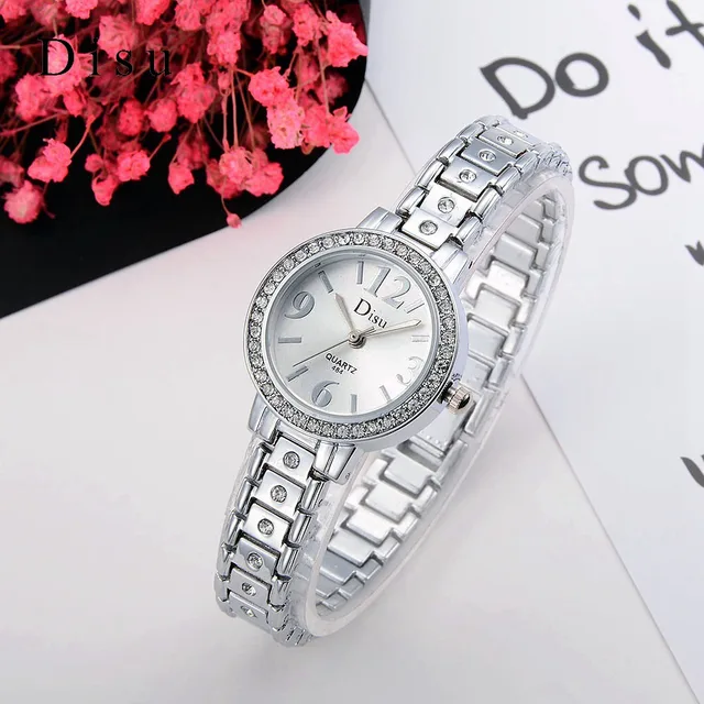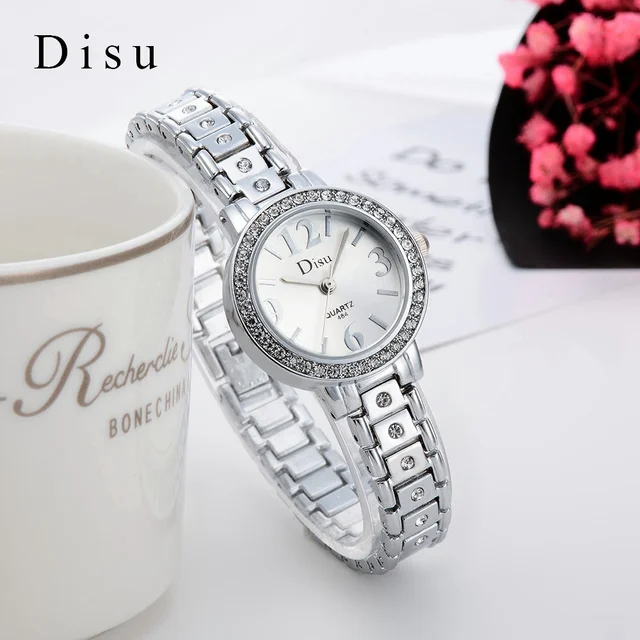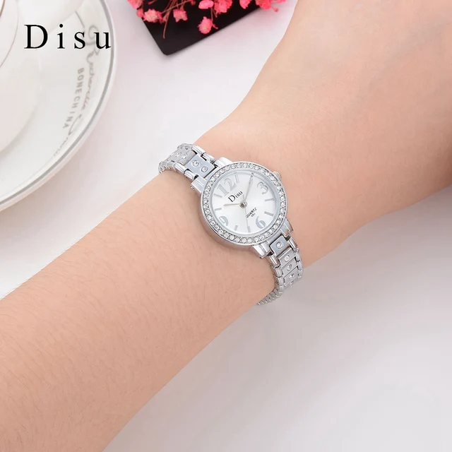 | [해외] DISU 패션 여성 실버 팔찌 최고 럭셔리 브랜드 여성 시계 여성 제네바 석영 시계 여성 시계 2017 |