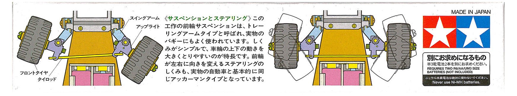 It seems to be a buggy that runs on a rough road surface, the front has adopted the right and left independent of the trailing arm type, and the rear also adopts the suspension equipped with the coil spring.