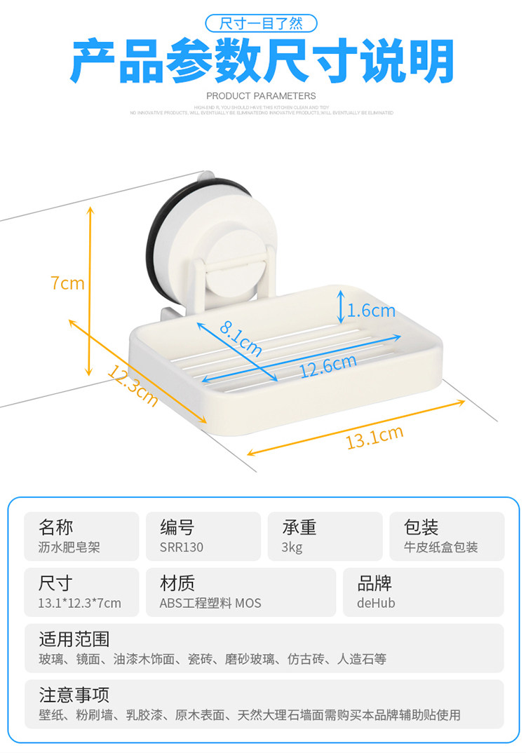 卫生间强力吸盘式肥皂盒浴室免打孔香皂盒壁挂式置物架