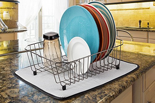 - SET OF TWO: Microfiber drying mat instantly dry dishes and protect countertops with highly-absorbent reversible mats Ideal to replace dish towels on the counter when handwashing pots, pans, dishes, glassware and cutlery