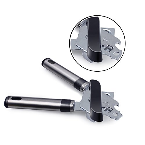 - ? STYLISH & ATTRACTIVE DESIGN - The Sokos can opener imparts the ultimate cooking experience. It has a stylish and attractive design in black and steel colors that looks great in every kitchen. This opener has an extra big and soft turning knob for easy and smooth maneuvering. The long and ergonomic anti-slip handle offers a comfortable grip for your safety, while being extremely strong and thick so it will not bend or break while using. This hand held opener is light and can be carried.