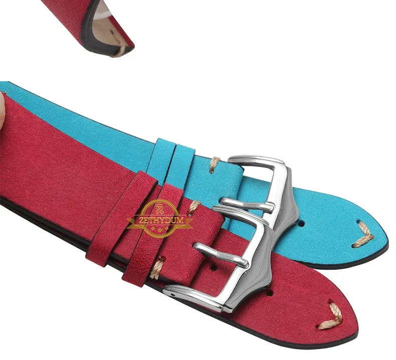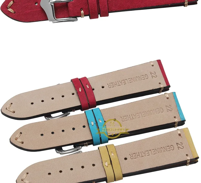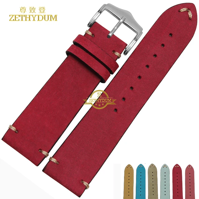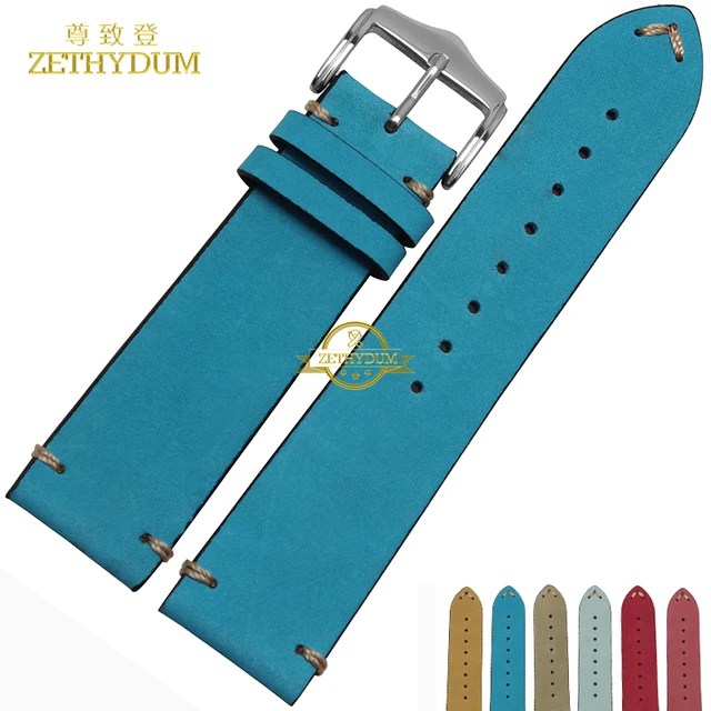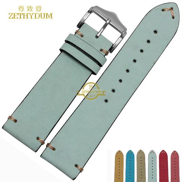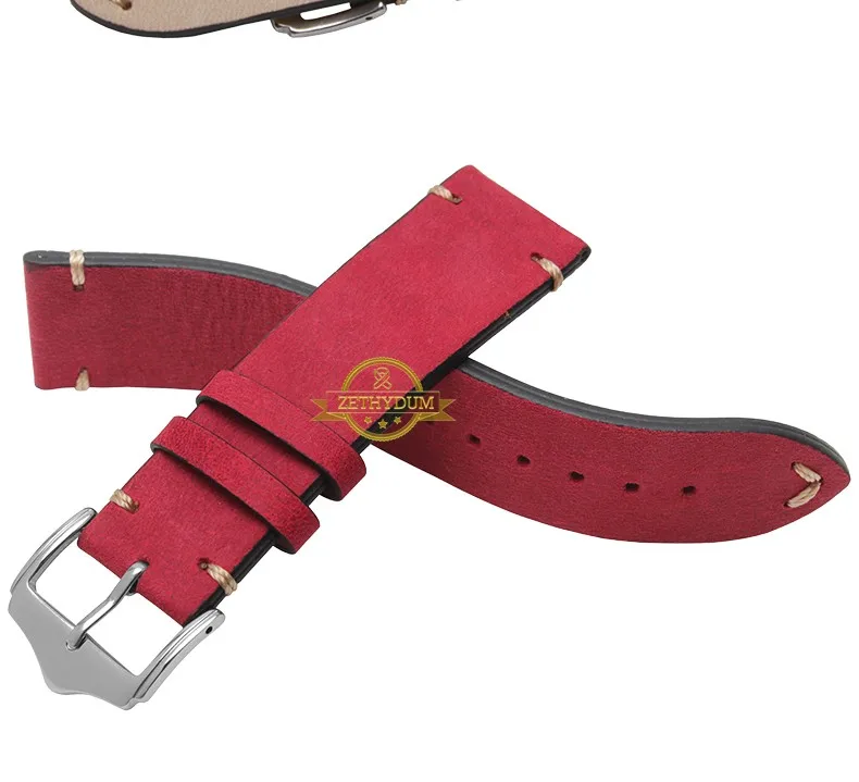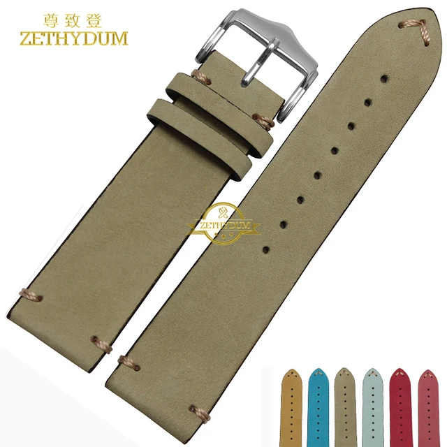 정품 가죽 팔찌 수제 손목 20 22 미리메터 시계 스트랩 젖빛 손목 밴드 시계 줄 두꺼운 스티치 팔찌