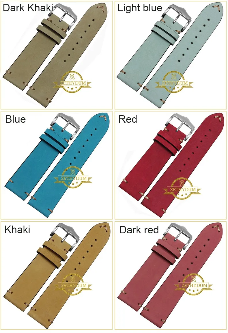 [해외] 정품 가죽 팔찌 수제 손목 20 22 미리메터 시계 스트랩 젖빛 손목 밴드 시계 줄 두꺼운 스티치 팔찌