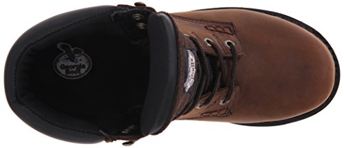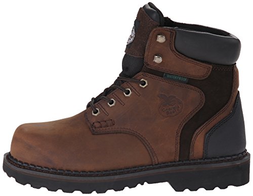 Studio : Georgia Boot Publisher : Georgia Boot Binding : Apparel Product Description These Georgia eagle light work boots blend safety, durability and strength with comfort features and a secure fit. The steel toe rests in a wide-load toe box, so not only does this safety toe footwear resist up to 75 lbs. Of impact and compression (astm f2413-05 i/75 c/75 protective toe classification), but it also provides enough room for your toes to remain comfortable. To offer you even more protection, Georgia boot® assembled these work boots without nails, so these boots are also in compliance with the astm f2413-05 electrical hazard standard. The upper is crafted with full-grain brown leather; there's a padded leather collar for comfort; and the lace-up design allows you to adjust the fit to however you are most comfortable. The interior is lined with a soft and breathable material; this allows your feet to remain cool and comfortable. When you're on your feet all day, the polyurethane footbed provides cushioning. 0