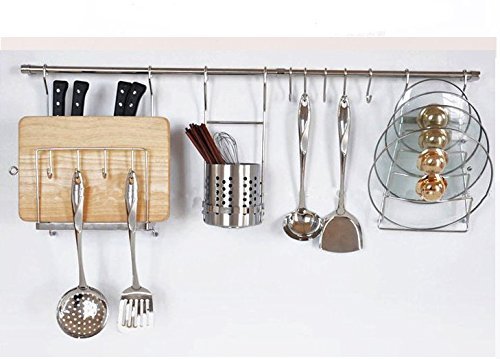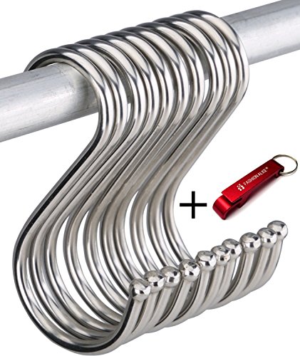 FASHION ALICE 10 Pcs Stainless Steel Metal S Shaped Kitchen Spoon Pan Pot Hanging Hooks Hanger,clasp,Hang pancake Turner, towels, clothes,Including Bottle Opener, Large Size Hook(3.31inch,8.4cm) (L)