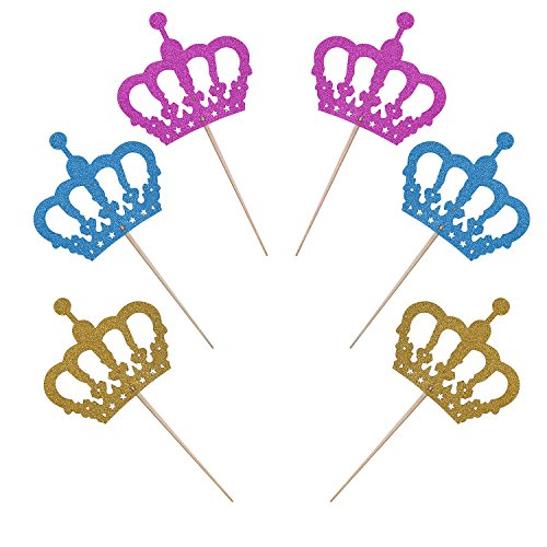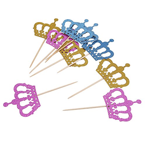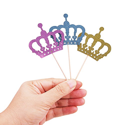 Joinor 48pcs Super Glitter Crown Cupcake Muffin Topper Picks Cake Decoration Baby Shower Birthday Party Favors