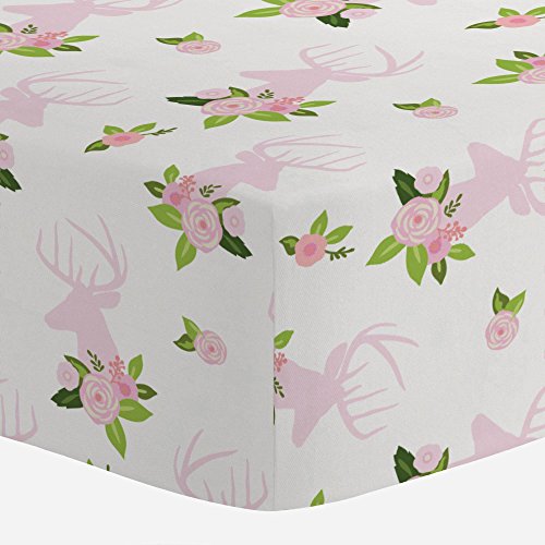 -. Title : Carousel Designs Pink Floral Deer Head Crib Sheet - Organic 100% Cotton Fitted Crib Sheet - Made in the USA