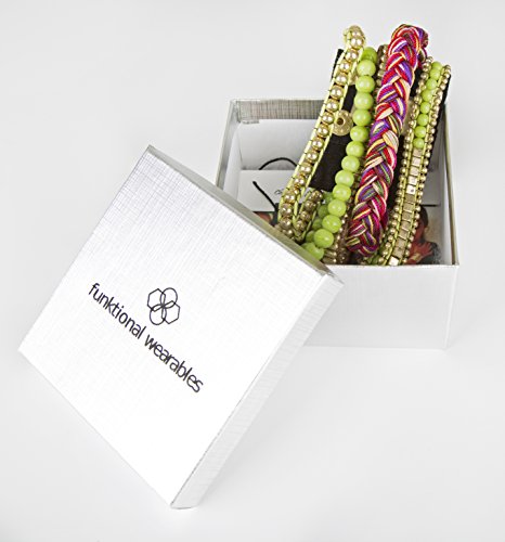 -. Feature : FITNESS FASHION: Don't let your activity tracker interfere with your look! FUNKtional Wearables has created a stylish line of snap bracelets to dress up your FitBit, Avia, or Misfit band for every occasion. No one will even realize you are wearing an activity tracker. / THE ROSIE: The ROSIE bracelet's design is colorful, youthful, and will make a great addition to any casual or professional attire. Reminiscent of a friendship bracelet, the braided rainbow thread adds a pop of color while the gold beads add a touch of simplicity and class. / TO USE: To use, simply insert the tracker, rounded edge first, into the open end of the pouch and adjust until it is secure. Then, just place the bracelet on your wrist to enjoy your new accessory. / TO REMOVE: Remove the tracker by firmly pressing the push pad at the back end of the pouch until the tracker slides out. You can wear your ROSIE bracelet without your activity tracker as well! / PRODUCT SPECIFICATIONS: Size M/L has inner circumference that adjusts between 6.75"-7.75." Width measures 1.75" inches. This product is not an official product of FitBit, Avia, or Misfit. Activity tracker not included.