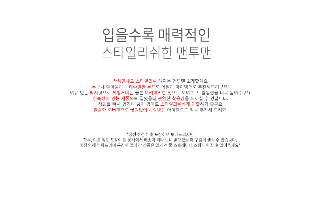 .같은 사이즈라도 체형에 따라 핏감이 조금씩 다를 수 있습니다.
