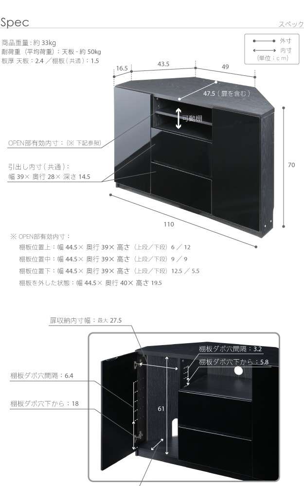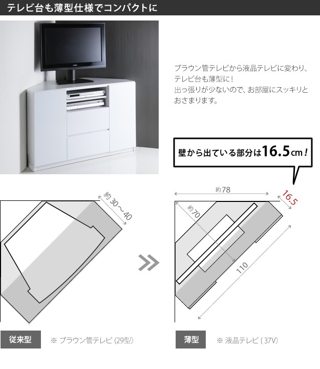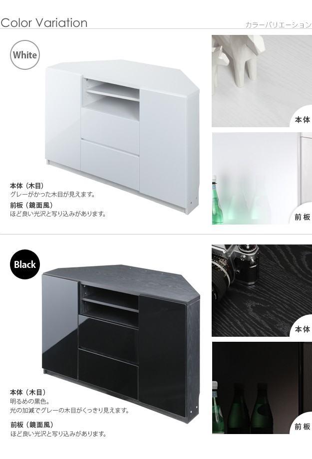 ●室内どこからでもテレビの見えるコーナーハイタイプTV台!鏡面テレビラックテレビボード