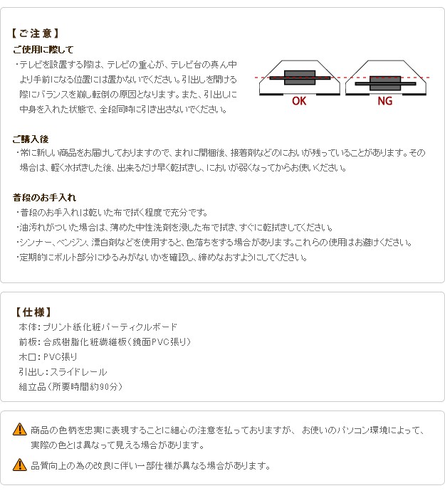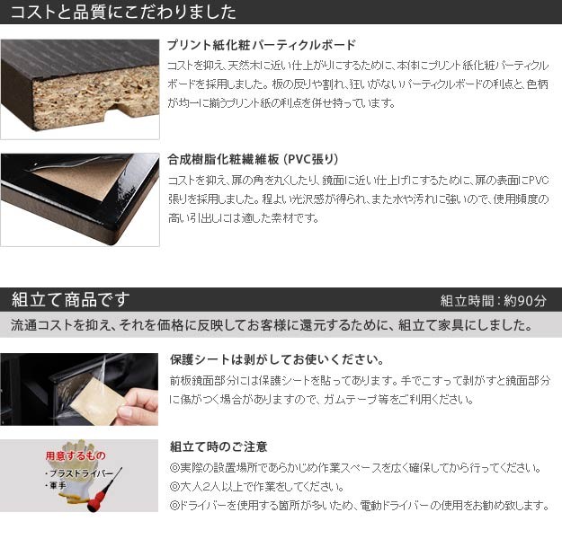 ●材質:本体-プリント紙化粧パーティクルボード、前面-合成樹脂化粧繊維板(鏡面PVC真空貼り)