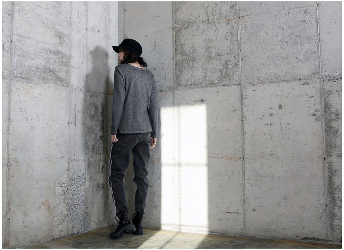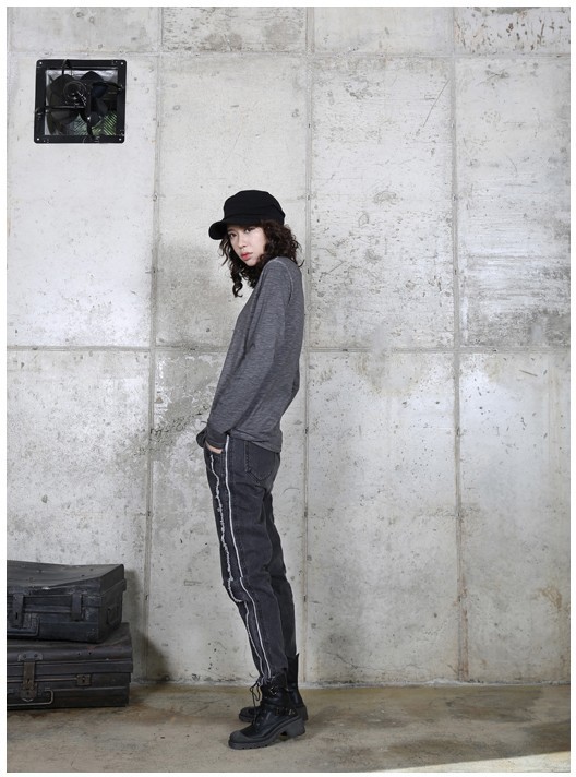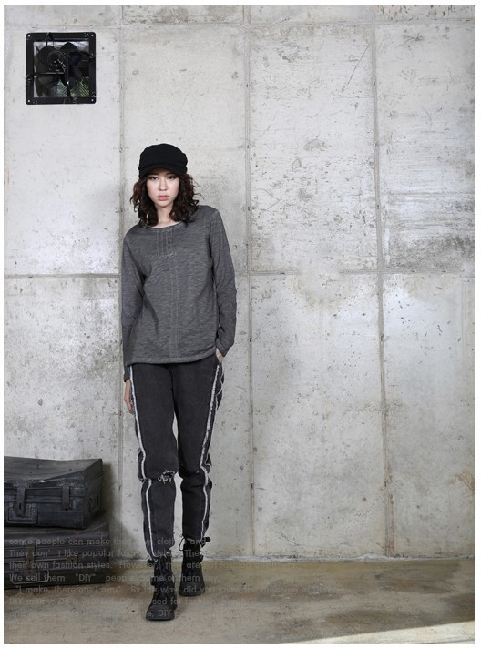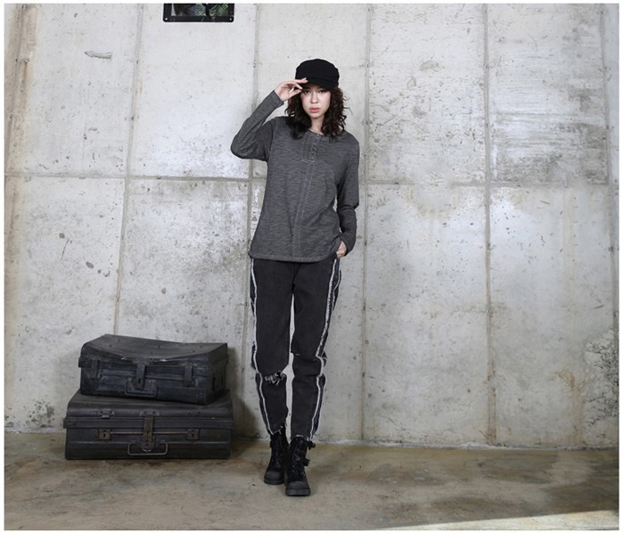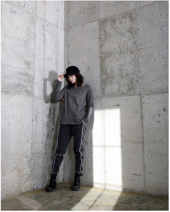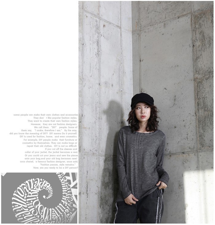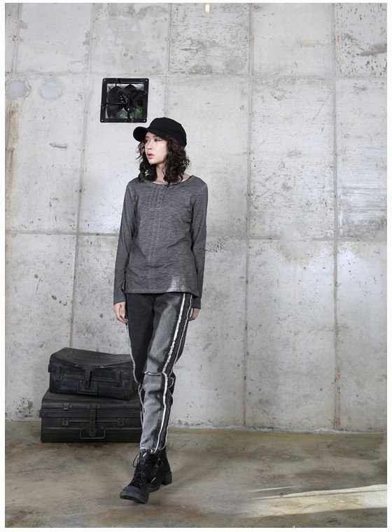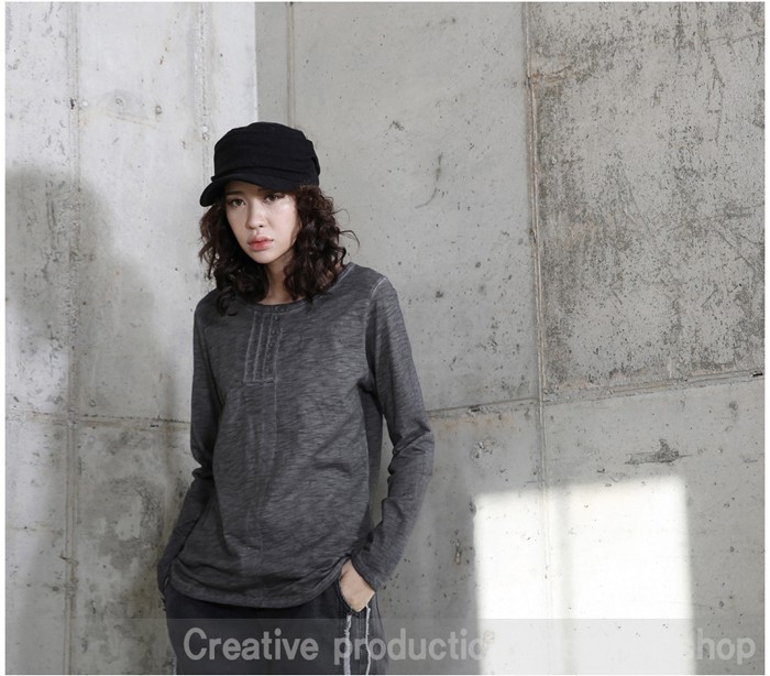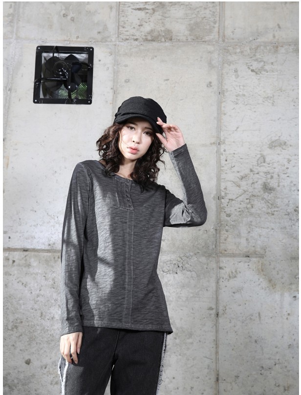 商品名:トップス レディース Tシャツ ヘンリーネック 長袖 無地 秋 2017 モード系 個性的 40代 ファッション