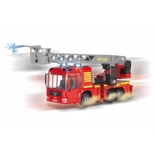 -. Binding : Toy -. Brand : DICKIE TOYS -. Color : Red -. EAN : 4006333019715 -. Feature : The sturdy Dickie Toys Fire Truck brings the action-packed world of the fire brigade into the playroom - extinguish, rescue, save lives! / Whether alone or with friends: the friction-driven Fire Engine modelled on a MAN design inspires children to re-enact exciting rescue missions. / Light and sound effects guarantee that the youngsters will feel just like their real life role models. / The manual fire hose provides extra fun and the removable roof lets the aspiring firefighters take a peak into the inside of the vehicle / And there's a special extra too in the form of a microphone, so that the supervisor's instructions can be heard clearly by everybody. -. IsAdultProduct : 0 -. ItemPartNumber : 20 344 3997 038 -. Label : Dickie (Imports) -. Manufacturer : Dickie (Imports) -. Model : 20 371 6003 AMU -. MPN : 20 371 6003 AMU -. NumberOfItems : 1 -. PackageQuantity : 1 -. PartNumber : 20 371 6003 AMU -. ProductGroup : Toy -. ProductTypeName : TOYS_AND_GAMES -. Publisher : Dickie (Imports) -. Studio : Dickie (Imports) -. Title : Dickie Toys 16" Light and Sound Fire Truck Vehicle (With Working Pump) -. Warranty : No Warranty