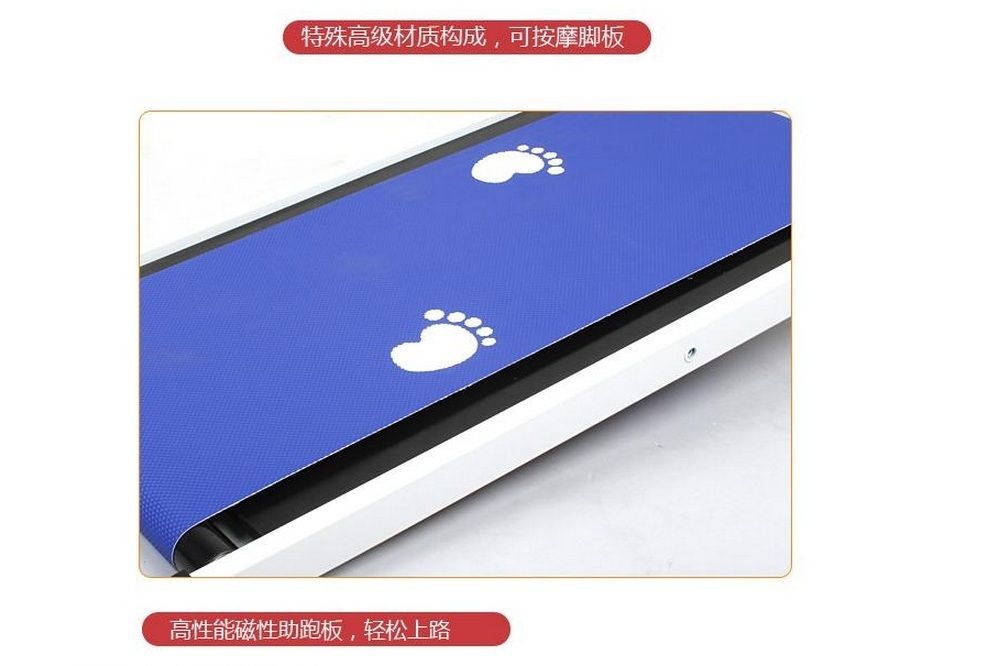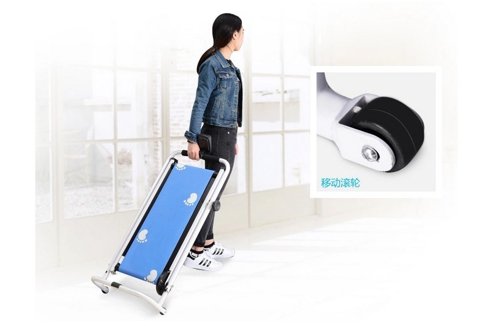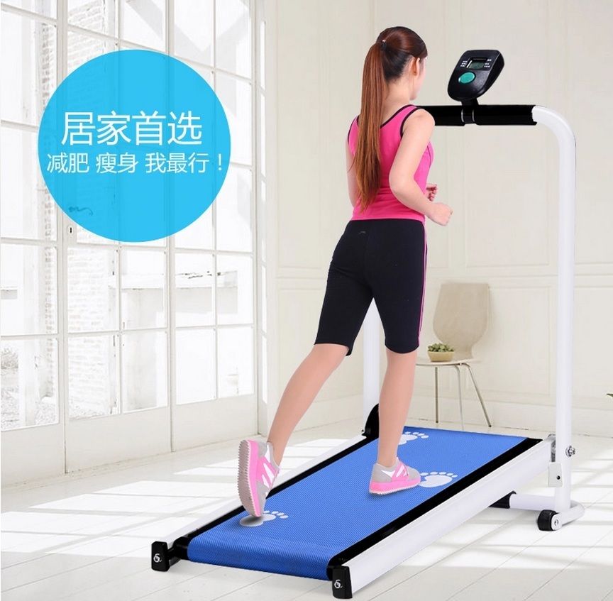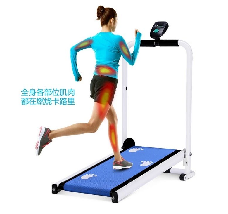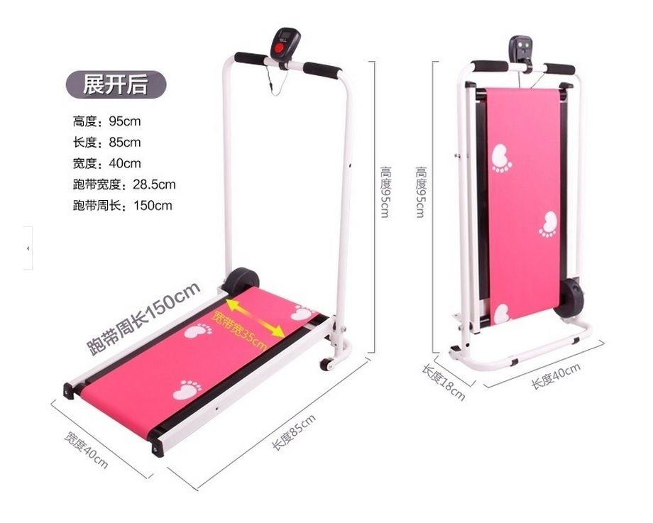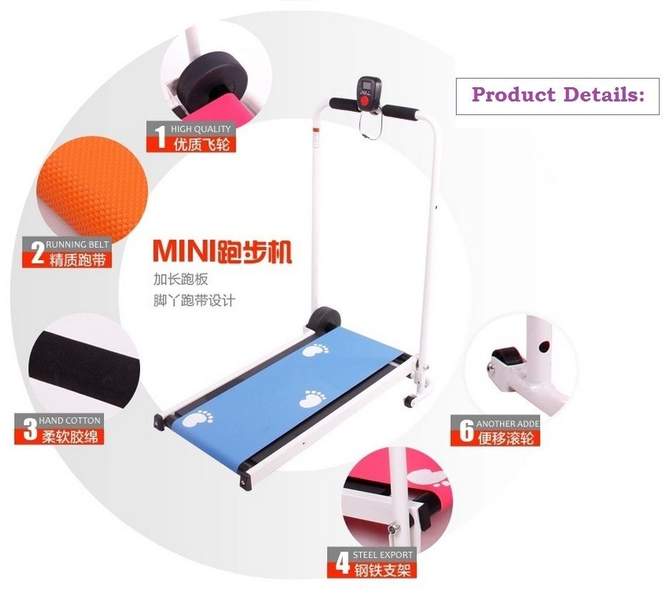 • Fat fighters and space-conscious humans reel in energetic enthusiasm with a mini treadmill that comes complete with a fitness monitor that records time, speed, distance, and number of banana split intakes. Small in size, rubber runners have attached wheels for easy portability and are fully foldable, allowing exercisers to store away workout machines in narrow spaces or leave them in attics. While motivated mortals choose hues of pink or blue to adorn exercise equipment, treadmills take on marathon runs towards residential areas and directly to doorsteps.