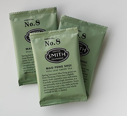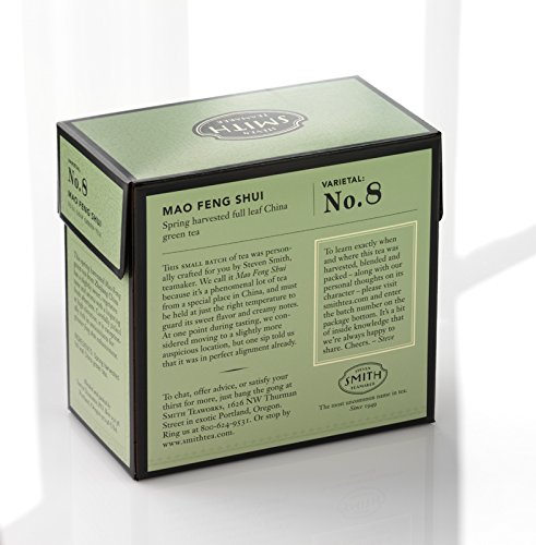 -. Binding : Grocery -. Brand : Smith -. EAN : 0853072002331 -. Feature : Spring harvested full leaf China green tea / Has a slightly sweet, vegetative taste and aroma with a lingering fresh aftertaste / For best flavor, bring freshly drawn filtered water to 190 degrees and steep three minutes -. Label : KeHE Distributors -. LegalDisclaimer : Actual product packaging and materials may contain more and different information than what is shown on our website. We recommend that you do not rely solely on the information presented and that you always read labels, warnings, and directions before using or consuming a product. Please see our full disclaimer below. -. Manufacturer : KeHE Distributors -. Model : 21133 -. MPN : 21133 -. NumberOfItems : 1 -. PackageQuantity : 1 -. PartNumber : 21133 -. ProductGroup : Grocery -. ProductTypeName : GROCERY -. PublicationDate : 2012-04-26 -. Publisher : KeHE Distributors -. Size : 15 -. Studio : KeHE Distributors -. Title : Smith Tea, Mao Feng Shui Green, 15-Count -. UPC : 853072002331
