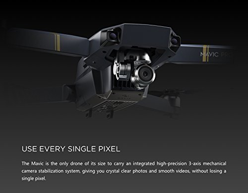 Wherever You Go The DJI Mavic Pro is a small yet powerful drone that turns the sky into your creative canvass easily and without worry, helping you make every moment an aerial moment. Its compact size hides a high degree of complexity that makes it one of DJI’s most sophisticated flying cameras ever. 24 high-performance computing cores, an all-new transmission system with a 4.3mi (7Km) range, 4 vision sensors, and a 4K camera stabilized by a 3-axis mechanical gimbal, are at your command with just a push of your thumb or a tap of your finger. POWERFUL Fly for miles. From your pocket. Inside the Mavic’s pocket-sized remote controller is DJI’s brand new OcuSync transmission technology, with a range of 4.3mi (7km) and Full HD 1080p video streaming. No bumps and scrapes When you know what’s in front of you, you won’t bump into it. The same is true of the Mavic. Using Flight Autonomy it can see obstacles as far away as 49ft (15m) in front, so that it can fly at up to 22mph (36kph) while avoiding the things it sees. Absolute Precision Flight Autonomy technology means the Mavic can hover precisely in more environments, and automatically land almost exactly where you took off. Stay flying longer Why fly for 10 or 15 minutes when you can fly for up to 27? With the Mavic you can. Use every single pixel The Mavic is the only drone of its size to carry an integrated high-precision 3-axis mechanical camera stabilization system, giving you crystal clear photos and smooth videos, without losing a single pixel.
