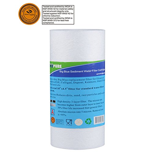 Replaces the same size (10” x4.5”) of following models:DuPont WFHD13001B; Pentek DGD series, RFC series; Culligan RFC-BBSA; Whirlpool WHKF-GD25BB. Fits Universal Big Blue/ Jumbo whole house water filter system.