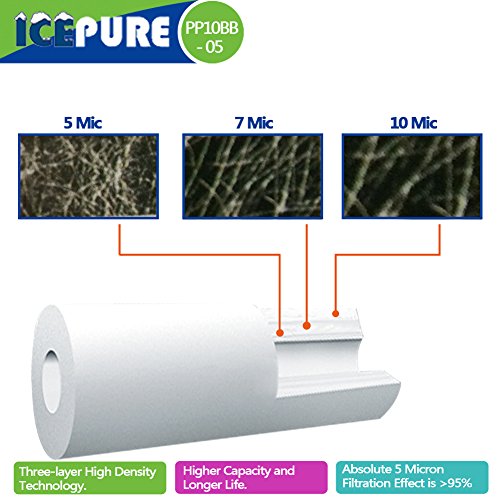 The filter has three layers. Micron rate differs from outside to inside. Outer layer is 10 micron. Middle layer is 7 micron. Inner layer is 5 micron. By this way, the filter has higher capacity of holding dirt. The filter has an Absolute Micron Rate-5 micron, which means the particle removal rate can be 95 % or over. General filer only have Nominal Micron Rate.