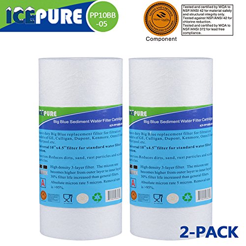(2-PACK) Big Blue Whole house Sediment Water Filter 4.5" x 10" (5 micron)Compatible with DuPont WFHD13001B,Pentek DGD series, RFC series,Culligan RFC-BBSA ,Whirlpool WHKF-GD25BB