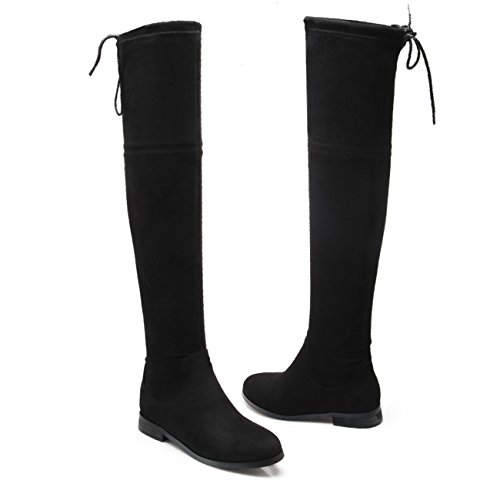 Binding : Apparel Product Description Item Type: Thigh High Boots Toe Type:Round Toe Closure Type: Lace up closure Heel Type:Low Heel Heel Height:0.98"(2.5CM) Shaft from arch: 22-25"(about 54CM) Outer Material:Faux Suede Outsole Material:Rubber Color:Black / Taupe Shoe Width:Regular