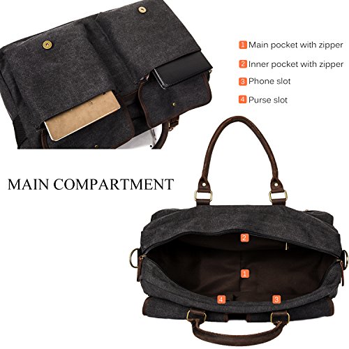 -. Title : NiceEbag Canvas Duffel Bag Daily Use Briefcase Travel Tote Shoulder Bag Top-handle Messenger Bag Leather Lage Duffle Bag For Men Women