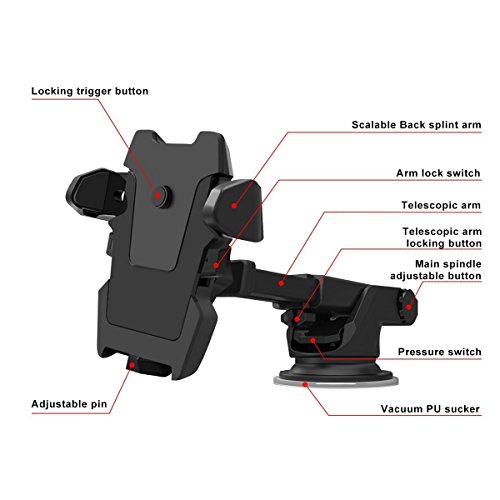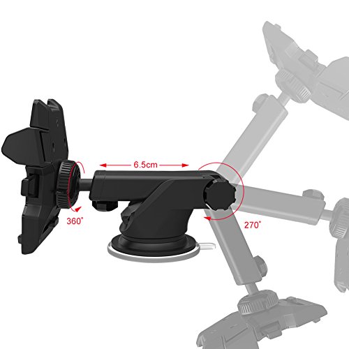 Up to 6.5inch extendable arm, fits in Dashboard/Windshield/ Air vent.Supports most of the smartphones size ranging from 2.3 inches to 3.2 inches including iPhone 7plus/7s/6Plus/6s Samsung Galaxy S8/Edge S7/S6/Note5 LG HTC Motorola etc.