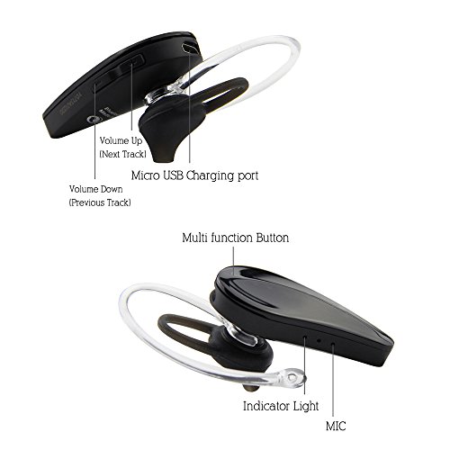 Hear it all-music, calls and more. AngLink Bluetooth headset streams audio form your Smartphone and makes every call worry-free with up to 4 hours talking time, and noise reduction features. Monitor the battery life automatically on your iPhone with Rechargeable lithium polymer battery. It has a working range of up to 30 feet between the phone and headset before audio degrades and the connection is lost.