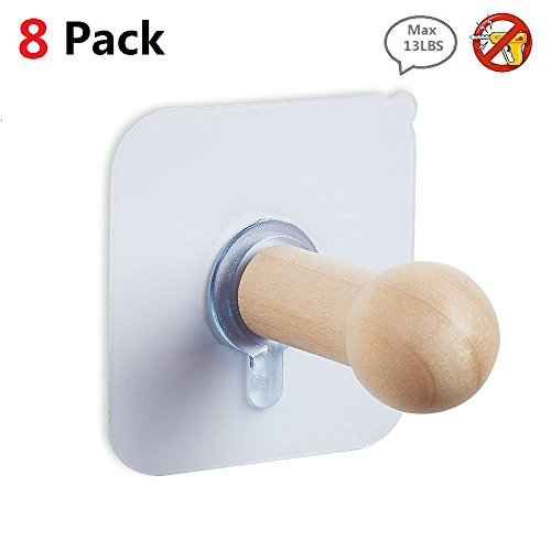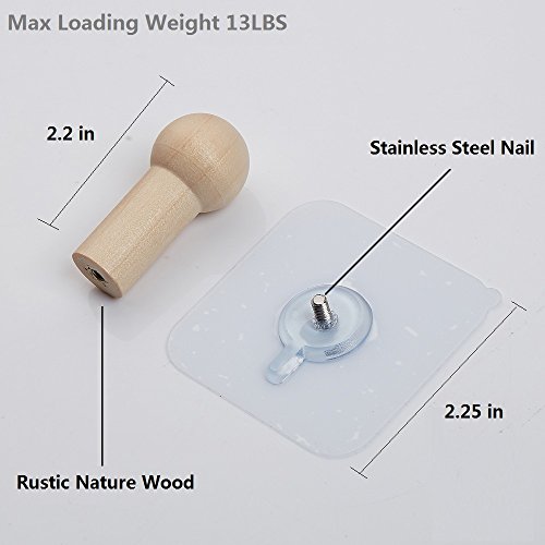 - ★EASY TO USE -Without Tools and Screws. Max loading weight 13LBS, Unpainted wood made backing material retain the breeze of nature, every solid wall hook has unique wood peg.
