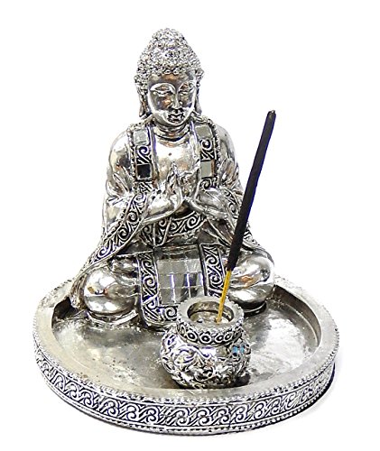 Home Decor - Incense Holder - Buddha Incense Cone Burner and Incense Sticks Holder Meditation Figurine