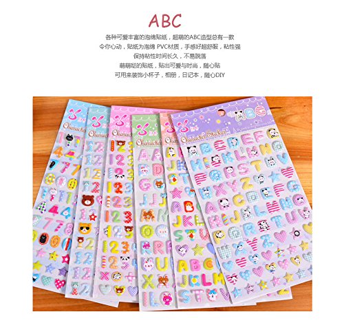 Quantity:6 sheets,nearly 600 counts number and letter stickers.