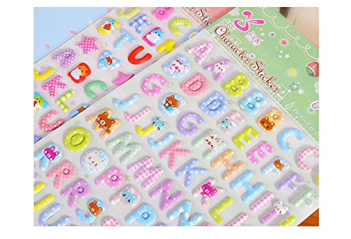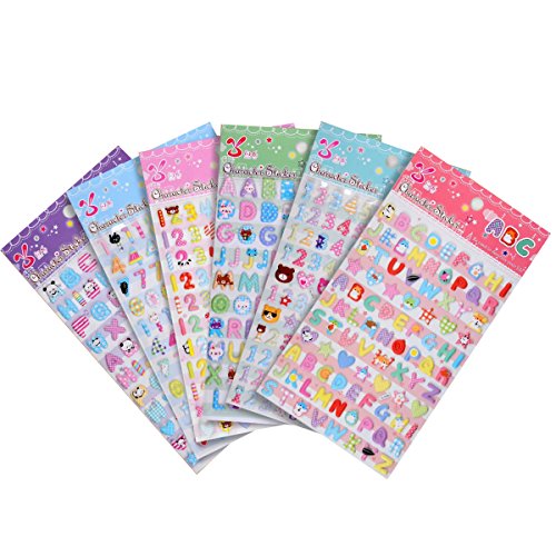 YUEAON Colorful Letter number stickers Alphabet Sticker scrapbook supplies-Self Adhesive-nearly 600 counts-small and cute- gift for kids toddlers -6sheets