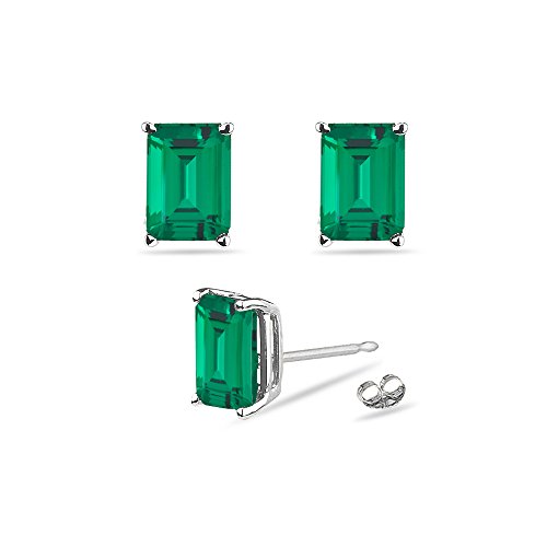-. Title : 0.38-0.65 Cts of 5x3 mm AAA Emerald-Cut Russian Lab Created Emerald Stud Earrings in 14K White Gold
