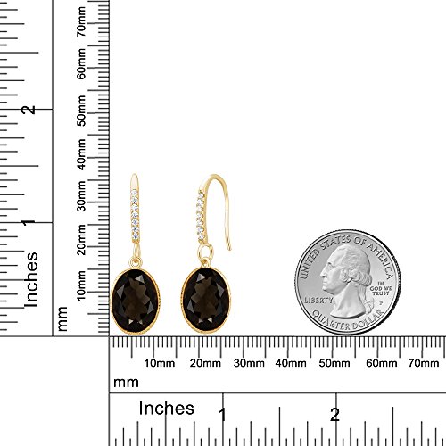 -. Title : 10.00 Ct Smokey Quartz 14x10mm Oval Gold Plated Silver Dangle Earrings