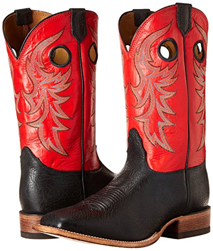 Studio : Nocona Boots Publisher : Nocona Boots Binding : Apparel Product Description You'll always be pleased with western boots made by legendary boot manufacturer, Nocona boots. This men's Nocona boot features a black leather foot under a fancy stitched 11" fiery orange leather shaft. Distinctive triad design. Double stitched 3/4 welt. Easy-on pull holes. Block heel with rubber grip surface. Contemporary square toe. 0