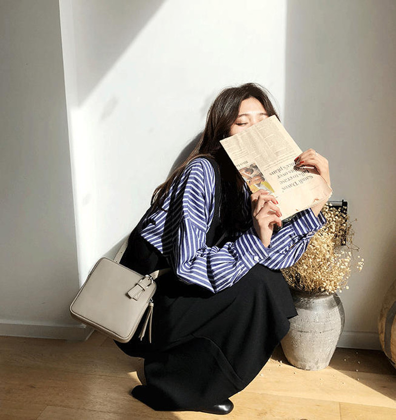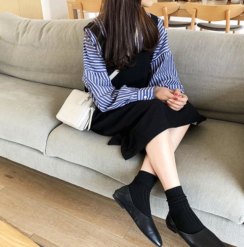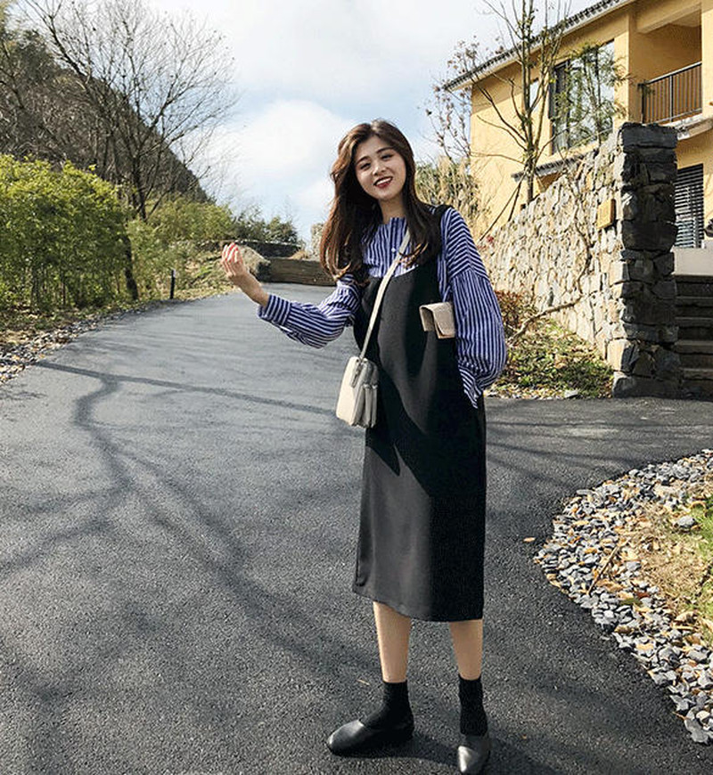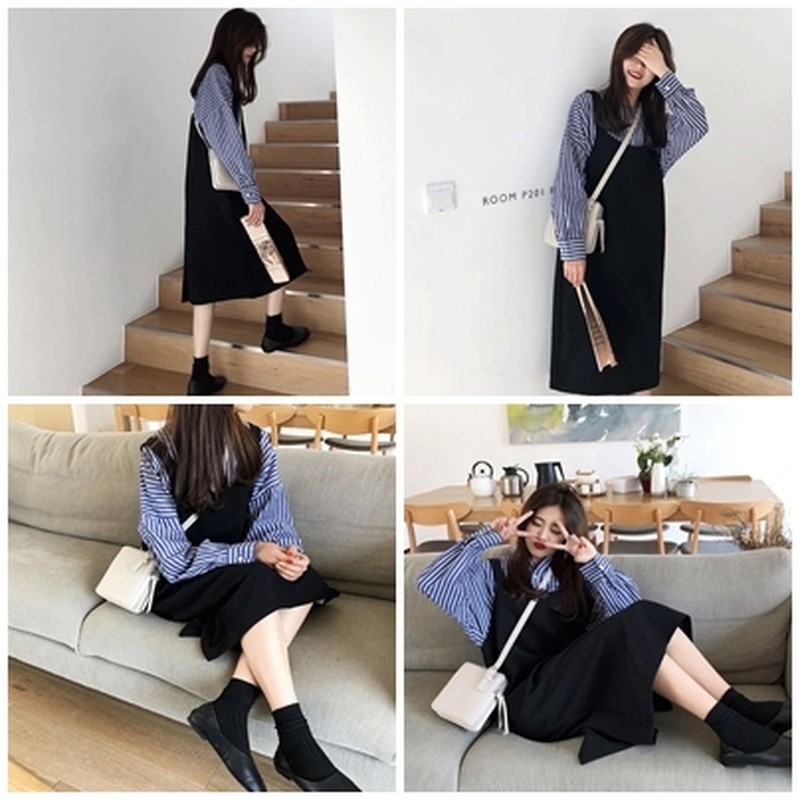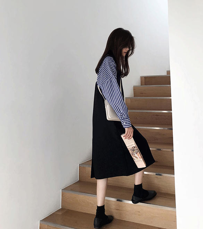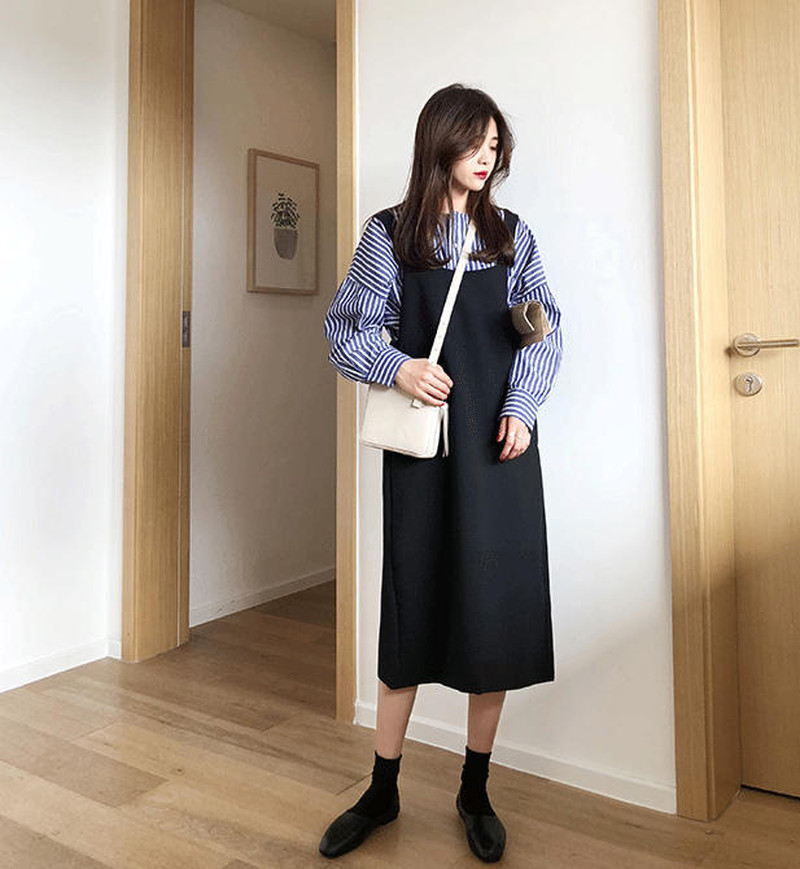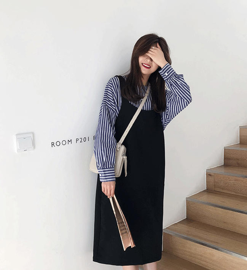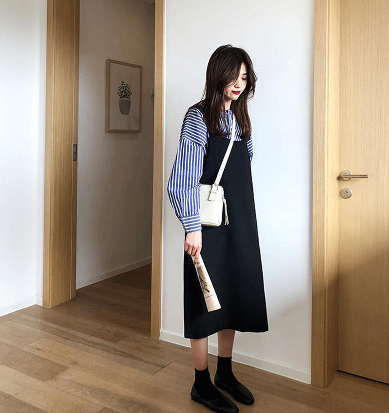 ♢ポイント♢ ストライプシャツ×ブラックワンピースです。 困ったとき、この一着でコーデが完成します♪