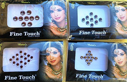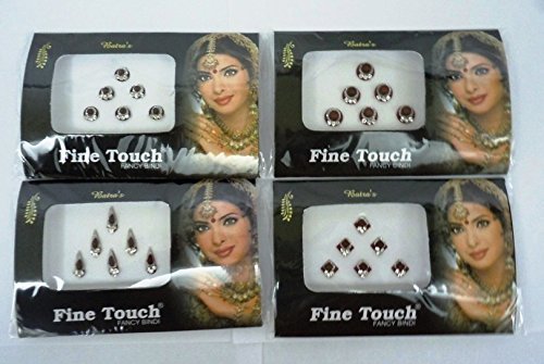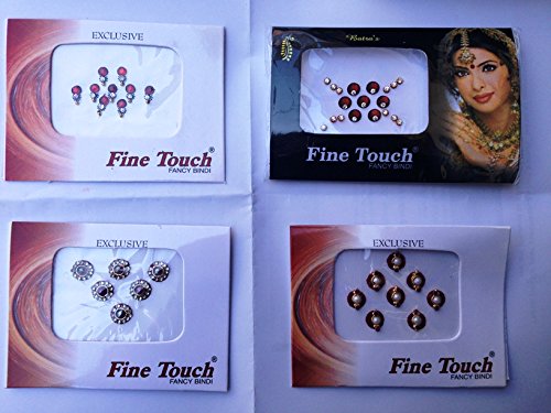 -. Feature : 4 PACK OF NEW BEAUTIFUL ASSORTED SIZED RHINESTONE STUDDED SINGLE BINDI'S. / ASSORTMENT OF DESIGN SENT AT RANDOM AS DESIGN & STOCK KEEP CHANGING .PLEASE FEEL FREE TO LET US KNOW IF YOU WANT ALL BIG OR SMALL / ALL THE BINDIS ARE READY TO WEAR AND REUSABLE. USE ABOUT 4-5 TIMES / GREAT FOR STICKING ON FACE,NAILS,BODY,BELLY, CELLPHONES,CARDS.DOLLS,BAGS,PAINTINGS ETC / Please see our other listings for more designs.
