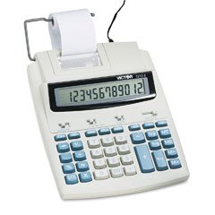 Versatile for AC desktop use or battery-powered portable use. Extra-large 19 mm digit size for easy readability of display. Calculator Type: Printing; Calculator Style: Desktop; Power Source(s): AC;Four AA batteries;Display Notation: Numeric.Feature