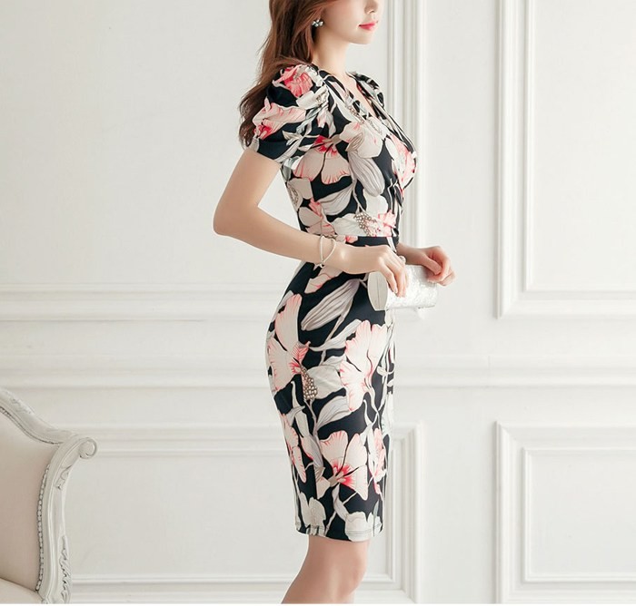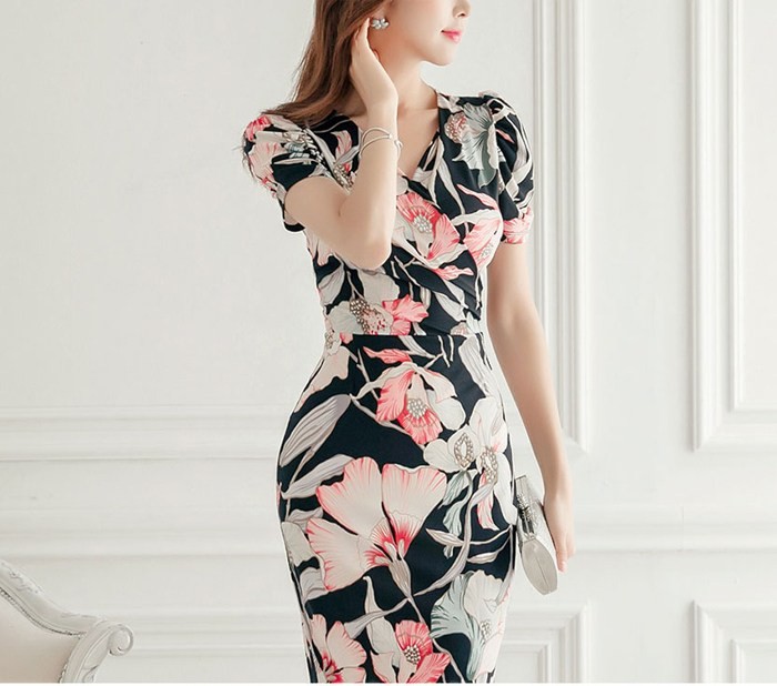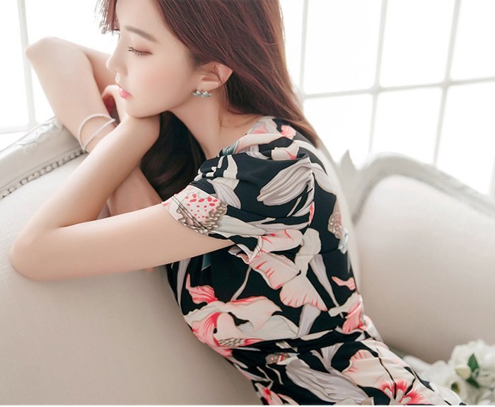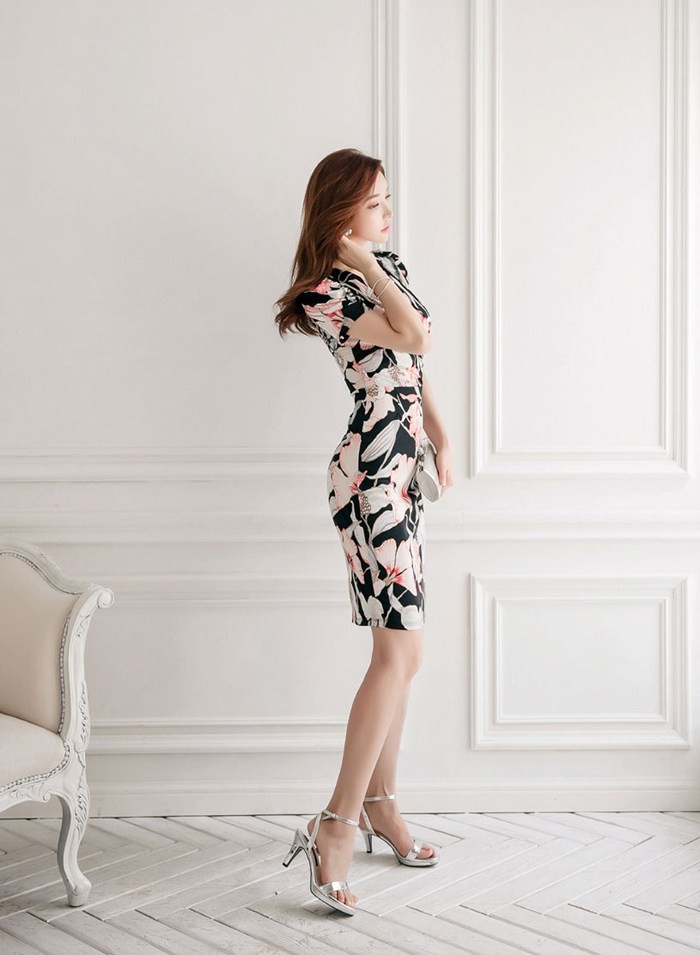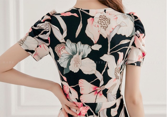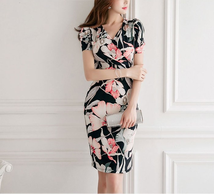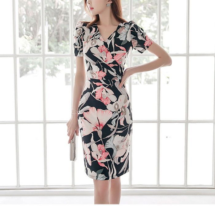 商品名:ワンピース カシュクールワンピ 膝丈 花柄 ボタニカル柄 フラワー 半袖