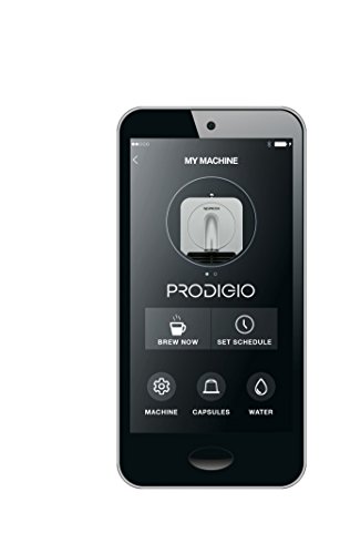 -. Feature : Die Nespresso Kapselmaschine Prodigio mit Bluetooth kann direkt mit dem Smartphone oder Tablet kommunizieren und erlaubt so eine moderne und bequeme Bedienung von der Kaffeezubereitung bis zum Kapselmanagement. / 19 bar Pumpendruck, um die feine Geschmacks- und Aromafülle jedes Grand Cru zu entfalten / 3 Programme: Ristretto, Espresso und Lungo / Kurze Aufheizzeit: Betriebsbereit in 25 Sekunden / Elektrische Wasserstands- und Kapselbestandserkennung via LED-Licht / Entkalkungsalarm und Bestellerinnerung / Lieferumfang: Nespresso Prodigio XN410T, Bedienungsanleitung, Welcome Pack mit 16 Kapseln