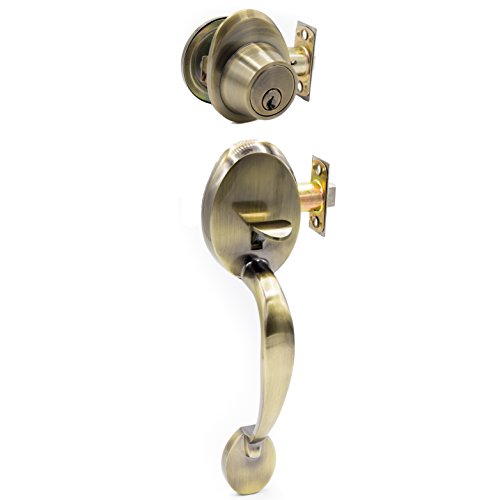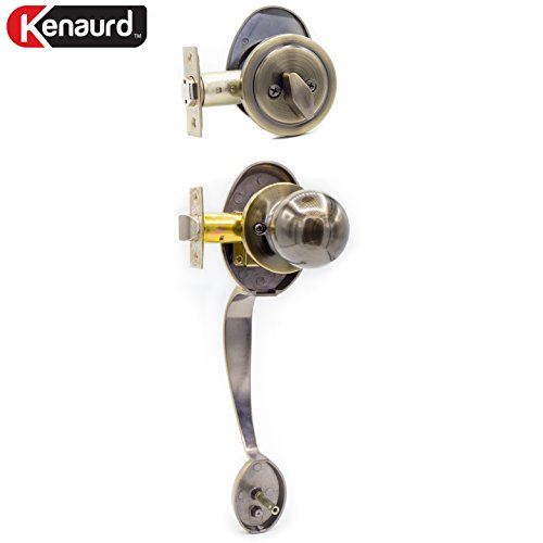 -. Title : Kenaurd Premium Design Exterior Handleset with Deadbolt Lockset - Antique Brass Finish