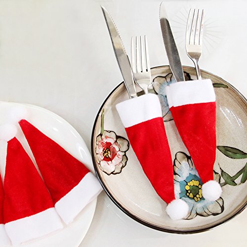 - Funny Christmas tableware decorations holiday party accessories for year round use.These cute Santa hat cutlery holders act as an awesome backdrop for your Christmas dinner,providing the best atmosphere of happy Christmas and New Year! Kindly note:7-15 days delivery.