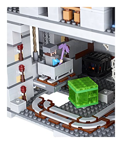 Build and experience the Mountain Cave, featuring an amazing minecart track with an integrated redstone‑powered minecart elevator, and an array of other features and functions, including TNT blasting, rotating spider‑spawner, charged Creeper explosion and a lava burst. Position the light brick to illuminate the rotating spider-spawner, wall of redstone, jack o'lantern, first-night shelter, furnace, lava or the torch above the cave entrance. Enjoy hands‑on Minecraft adventures featuring your favorite characters and objects with this easy-to-reconfigure, modular LEGO Minecraft set designed for young fans of the highly successful sandbox video game. Includes Steve and Alex minifigures, plus 13 mobs including a charged Creeper.Feature