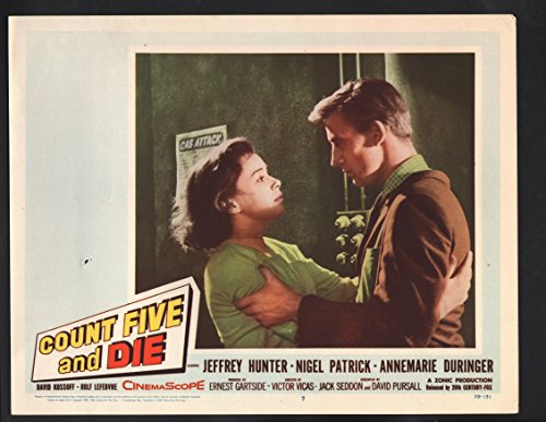 MOVIE POSTER: Count Five and Die Lobby Card-Jeffrey Hunter holding Annemarie Duringer.