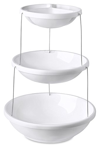 Collapsible Bowl, 3 Tier - The Decorative Plastic Bowls Twist Down and Fold Inside for Minimal Storage Space. Perfect for Serving Snacks, Salad and Fruit. The Top Bowl is Divided into Three Sections.
