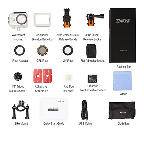 - 【Metallic shell & APP Control Sharing】Made of aluminum alloy metal material,Built-in 2.0’’ TFT LCD Screen.Connect your Android or IOS devices to V5s via ThiEYE APP, then you can set up the camera, and view, edit, share videos and photos easily.