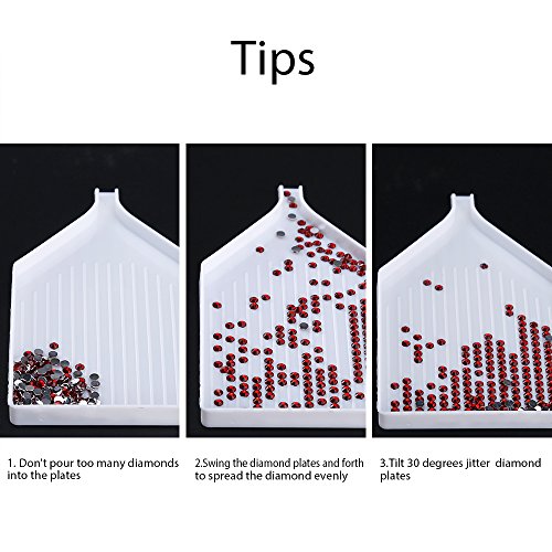 - Package Included: 7 Pieces 4 different types of diamond sticky pen, 7 pieces 5 different types plastic plates, 30 pieces of glue, 2 pieces plastic spoon, 2 pieces plastic tweezers, 3 pieces label and 1 diamond embroidery box