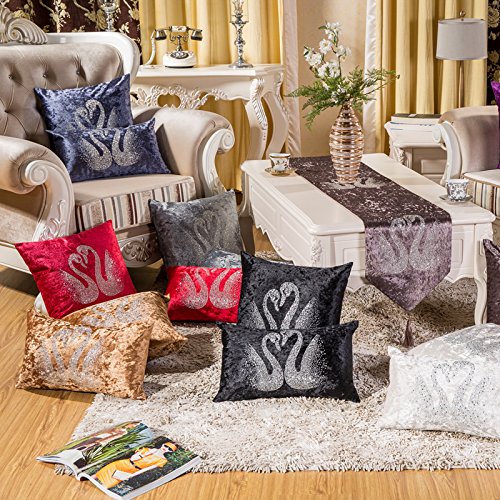 Made of 100% high quality velvet fabric and swan hot drilling.With tall and straight, not easy to fold, the characteristics of quick drying.Both the front and the back of the pillow cover have the same color