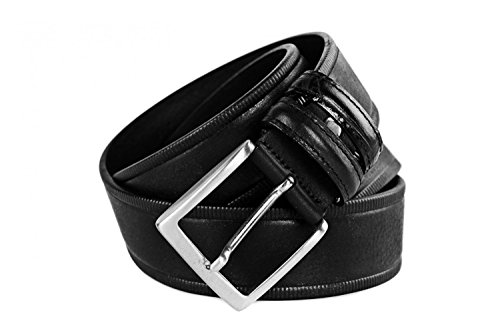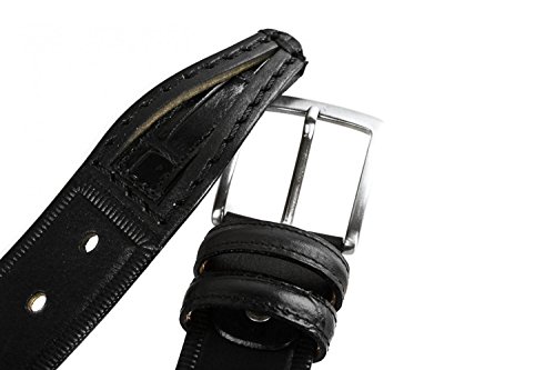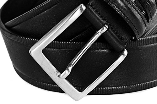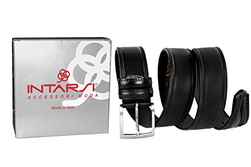 Product Description Production: MADE IN ITALY Type of skin: Smoothn without seams Type of buckle: satin chromed Type: Belt man Weight: 0,1 KG Materials: Real leather Brand: INTARSI Including: confection box Colour: black Features: shortenable belt