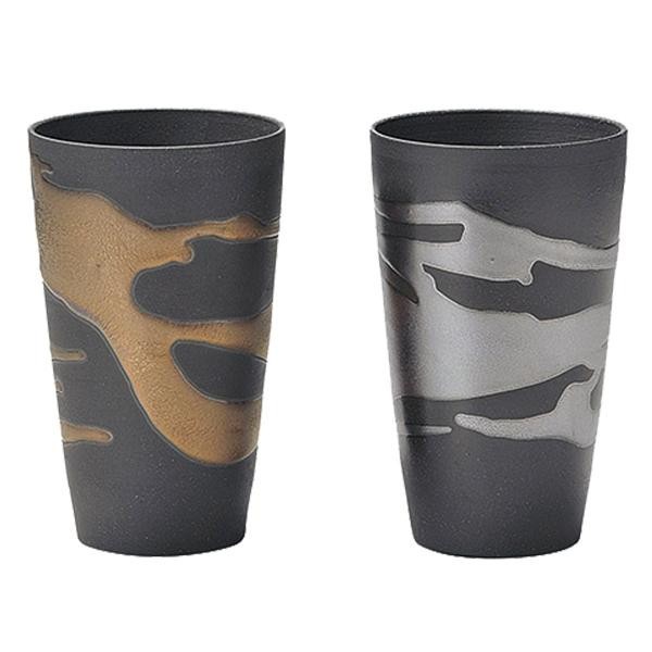 「清風の匠」田端繁道のカップ。きめ細やかな黒土に金銀の釉薬が映えます。キメの細かい焼きしまった黒土が、ビールの泡をマイルドにしてくれます。 |